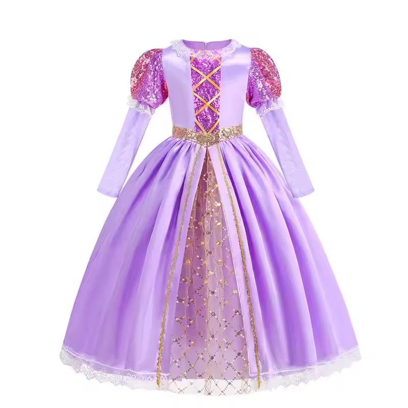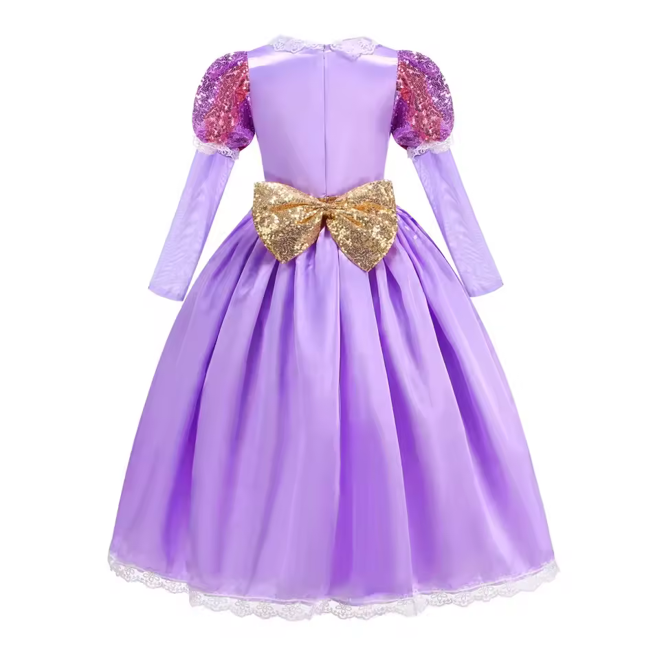 Faites briller les yeux de votre enfant et sortez de votre tour avec cette magnifique robe de Raiponce ! Inspirée du dessin animé Disney, cette robe violette aux détails soignés (laçage sur le corsage, manches bouffantes) est parfaite pour revivre le conte de fées. Idéale pour un anniversaire princier, un spectacle ou le Carnaval.